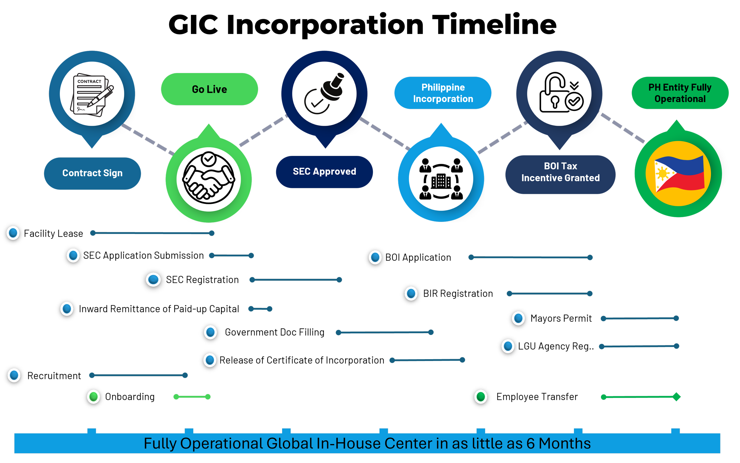 Genfinity’s decades of experience in the IT-BPM support industry has taught us that successful integration of offshore labor into highly complex operating environments require working closely with you to develop an intricate understanding of your processes, their unique operating procedures and your company culture. This information best enables us to work closely with you to identify, and custom develop the best talent, create detailed implementation and ramping plans, document operating procedures, and harmonize your company culture to your new Philippine entity. Genfinity’s Admin, HR, Payroll, Talent Acquisition, Training, Legal, Ops Support and Project Management teams provide the infrastructure for you focus on the operational and service delivery aspects of the entity. All offered in an As-A-Service model allowing you to bring any (or all) of these services in-house as your entity matures.